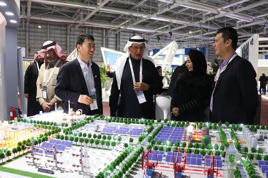 沙特阿美高级副总裁AbdulHameed一行参观中国石化展厅。