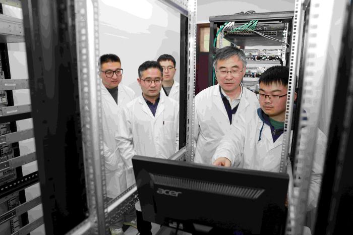 林嘉平教授(右二)在指导搭建数据库和软件平台。华东理工大学供图