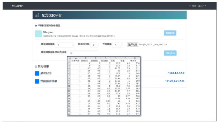 AIplus高分子软件平台-配方优化截图。华东理工大学供图