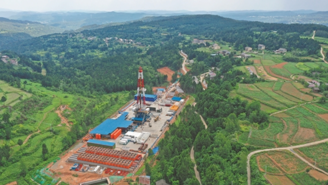 我国首口以最古老沉积地层南华系为完钻层位的万米科探井——中国石油深地川科1井在四川剑阁深山鸣笛开钻。图为深地川科1井全景。