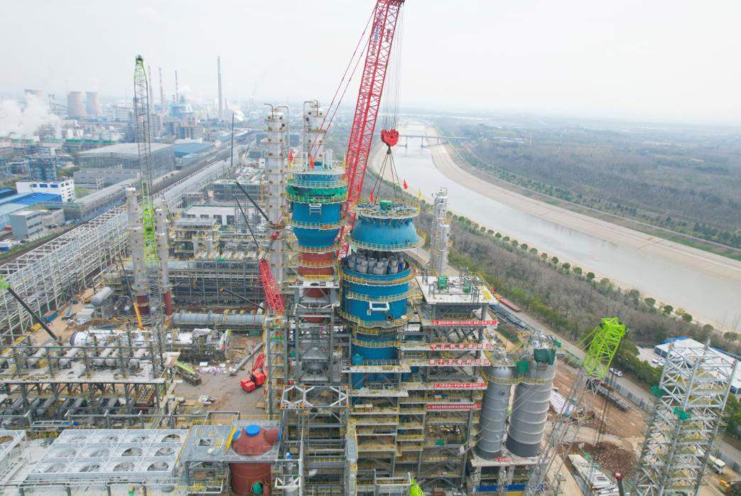 模块化施工,安全又便捷。在扬子石化炼油结构调整项目建设中,十建公司对催化裂化装置“两器”设备施工方案进行多次优化,通过采取深度模块化预制的方式,全力消除高处作业、起重吊装等环节的安全风险隐患,提升施工效率。针对设计要求、结合现场条件,项目部决定将“两器”非超限段分4段模块整体供货现场,超限段则分为3段模块和两个封头进行吊装,最大限度减少了高空安装工作量,有效降低了安全风险和运营成本。
