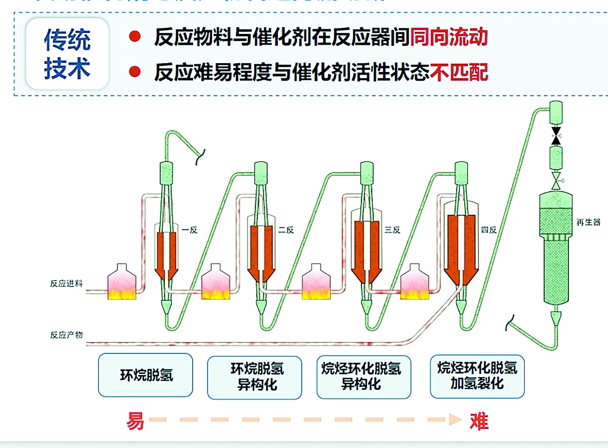 “低碳高效逆流连续重整工艺属国际首创,达到国际领先水平,是我国石化工业原创技术的一项重要成果。”2022年5月13日,在中国石油和化学工业联合会组织的科技成果鉴定会上,鉴定组如此评价。