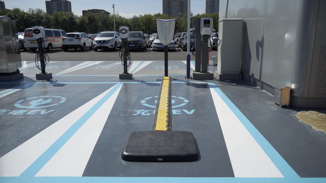 本站选用了一套11kW无线充电设备,适配一汽红旗新能源车型。相比充电桩有线充电,无线充电只需把车停到带有无线充电设施的车位上,省去车主下车手动操作充电环节,可以做到随停随充,极大改善了充电体验。