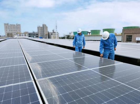11月30日,光伏发电项目仪征化纤厂区屋顶部分建成并网发电,标志着中国石化装机容量最大的分布式光伏发电项目取得进展。该项目包括仪征化纤厂区屋顶及停车场光伏发电两部分,总装机容量25.8兆瓦,由新星公司与仪征化纤合作建设。项目全部投产后,预计每年可发绿电2600万千瓦时、节约标准煤8300吨。图为仪征化纤技术人员查看光伏组件的安装质量。本报记者刘玉福摄翟瑞龙文