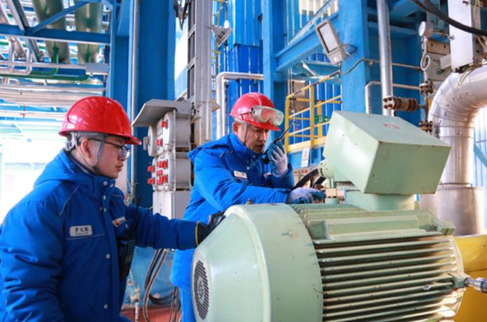 图为1月8日,员工在30万吨/年聚丙烯装置检查关键设备,保障高效生产。