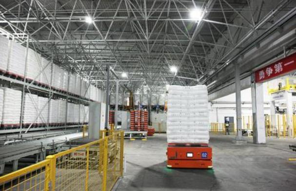 燕山石化是中国石化5G基础设施建设及应用项目4家试点企业之一。此项目于2023年3月开工建设,投用后实现产品包装线、产品库与发货站点之间的智能化无缝对接,提升库存容量和产品出厂效率。此外,实现产品智能出厂、MES、ERP等业务数据的互联互通和共享,提升了业务数据链条价值。图为自动入库系统背负式机器人运送聚丙烯产品入库。