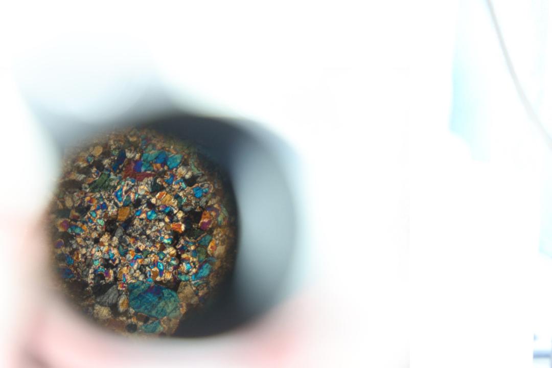 在地质学界,素有一片岩石看穿一座山的说法。在岩屑充分晾干后,工作人员会将岩屑制成薄片,通过显微镜观察,便可以判定岩屑的矿物组成和结构特征,解读万米深层演化的地质信息以及油气生成运移的蛛丝马迹。