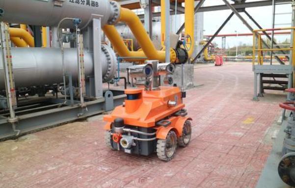 近日,西南油气分公司威荣气田在集气总站投用巡检机器人。机器人具有监测类型广、灵敏度高、维护成本低等特点,通过运用信息化系统智能监控和预警功能,加强对气田关键设备设施的巡检,减少人工巡检频次,识别人工巡检难以发现的隐患,助力气田安全生产。图为巡检机器人在集气总站巡检。