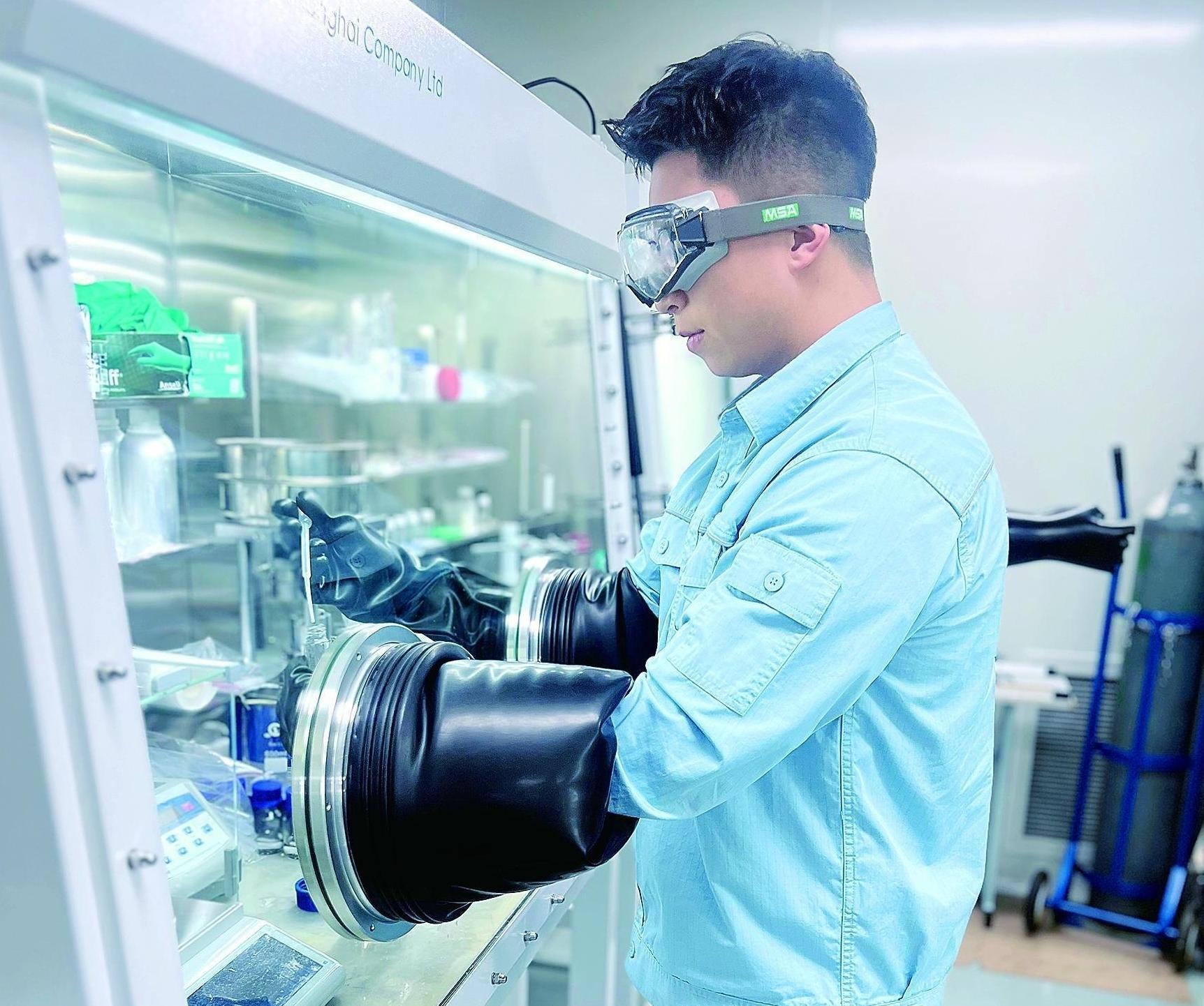 上海石油化工研究院锂电池电解液研发人员进行实验操作。郭宇翔 摄