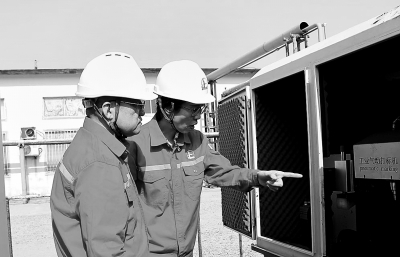 日前,广东石油寮步油库员工对无线远程手动闸阀状态采集系统进行调试。连宗凯摄