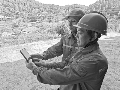 8月30日,江汉油田涪陵页岩气田员工使用气田电网电子图册查找设备相关参数。隆继勇摄