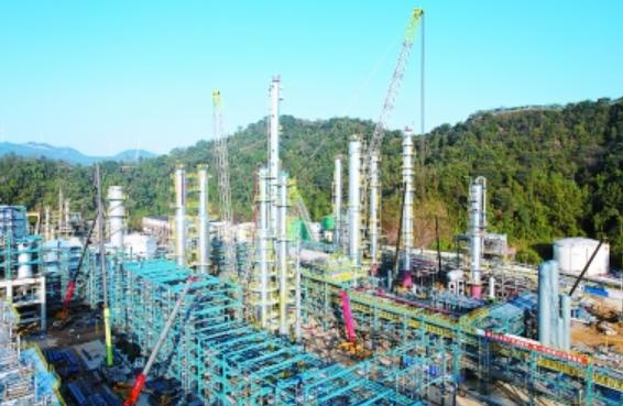 10月22日,湖南省重点建设项目湖南石化100万吨/年连续重整联合装置工程项目18台各重100吨以上的塔器设备,由承建单位五建公司全部安全吊装就位。目前,该项目进入设备安装高峰期,装置主体钢结构进度72%,设备安装进度60%,现场管廊管道穿管基本完成。图为装置施工现场。
