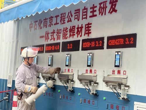 在工程建设中,存在着焊材数量大、种类多,焊工领用焊材时间长、人工发放易出错、焊材追溯难等问题。南京工程公司推进智慧化工地建设,持续加强工程建设领域新技术、新装备的研发应用。2021年,成功研发第一代智能焊材库,实现焊材自动化管理、智能化发放,有效提高焊材发放效率,多次被业主评为亮点工程。今年9月,第一代智能焊材库实现优化升级,11月开始在镇海基地二期项目正式投用。