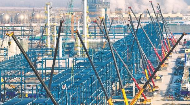 1月14日,新疆库尔勒上库工业园区,气温已降至零下20摄氏度。在独山子石化塔里木120万吨/年二期乙烯项目施工现场,工程建设公司四川油建公司的几十台吊车在管廊前并成一列,吊臂高伸,进行钢结构吊装作业。入冬以来,根据作业现场钢结构吊装特点,四川油建项目部编制专项施工方案和应急预案,明确风险点与管控措施、应急处置措施,确保现场安全生产。截至当日,四川油建负责的地上管网部分综合进度已达53.26%。