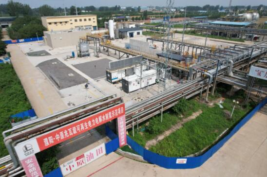 “落户”中原油田的中国石化兆瓦级可再生电力电解水制氢示范项目全景。