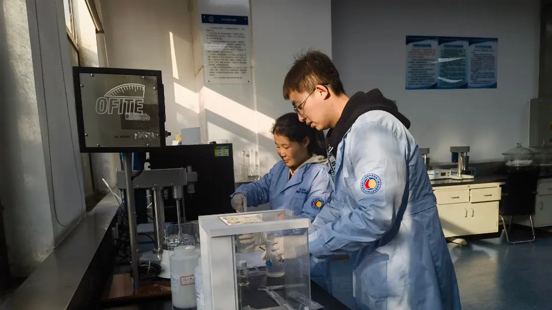 长庆油田创新应用宽粒径石英砂支撑剂,探索降本增效“新途径”。宽粒径石英砂省去了传统的干燥和筛分环节,生产效率大幅提升,其自分离效应可实现支撑剂有效铺置。2024年在页岩油、煤岩气等开展试验61口,使用30/150目石英砂达31万吨,并成功开展国内首次宽粒径“湿砂”试验,为储层改造降本增效开辟新的技术方向,填补国内行业技术空白。绿色开发"黑科技" 干粉压裂液让废水变"活水"
