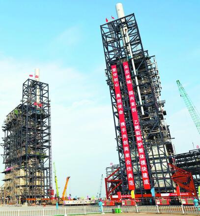 从天津南港乙烯装置首吊开始,6台乙烯装置核心大型设备交替作业,边“穿衣戴帽”,边吊装,历时60天,比原计划提前17天,吊装总重量达到8712吨,创造了同类装置吊装时间最短纪录。