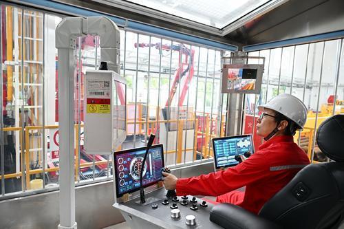 7月30日,石油工程技术研究院完成对智能液压钻机的升级改造,从钻杆单侧自动输送和排放扩展到双侧自动作业,同时增加动力猫道和管柱处理工具举升载荷,提升了智能液压钻机的智能化水平,实现作业安全与效率双提升。图为7月30日员工操作智能液压钻机。本报记者 胡庆明 摄 通讯员 郭海滨 文
