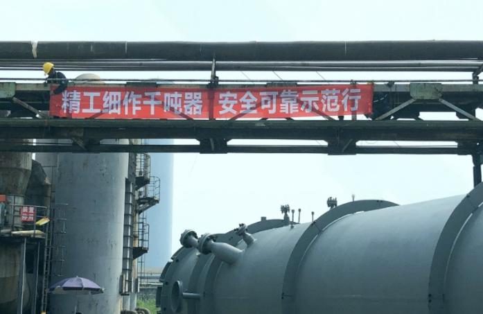 在吊装现场,350吨汽车吊与70吨吊车协同作业,80吨反应器精准落入基座。川金象总裁唐印介绍说,高难度作业背后是严苛管控,协同攻坚的结果。为确保“巨兽”的精准就位,团队提前2个月开始研究论证方案,审查设备资质与人员证书,安全技术交底覆盖16项关键事项,技术文件堆积半米高。“每一步都要确认,每厘米都要精准。”起重师傅介绍,离地30厘米时暂停检查,就位前进行“毫米级”微调。川金象董事长雷林全程注视,“沉默里是对团队专业的信任”。