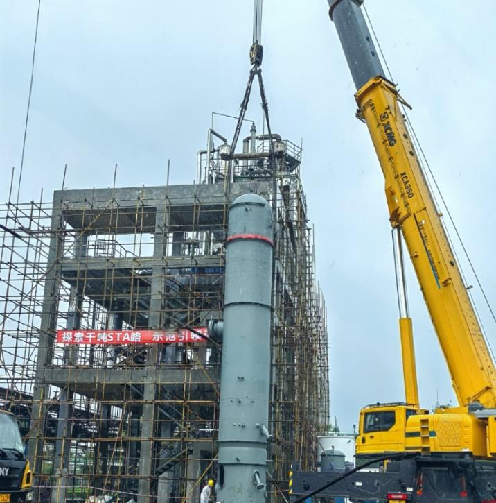 全球首套绿氢航煤千吨级中试装置核心设备吊装成功(图)