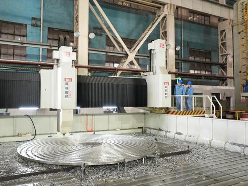 日前,南化化机公司使用新引进的数控平面钻铣中心,成功解决了大型不锈钢渐开线管板变形、曲线铣削编程复杂等难题,高效完成管孔钻孔、镗孔作业,相较于现有卧式深孔钻,作业效率提升40%,实现一次交检合格率100%。图为数控平面钻铣中心加工现场。裴 昱 摄???????