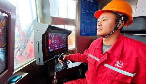 近日,华东油气分公司苏北工区首台全自动化钻机在泰州采油厂溱页5井投用,标志着该公司又一自动化应用成果落地。钻机投用后,司钻可在操控室内远程操控举升式钻台面机械手、二层平台机械手等设备,自动完成钻杆上提、下放作业,为钻井无人化施工构建安全屏障。图为11月9日司钻在室内操控机械手进行作业施工。沈志军 摄 柳长春 文