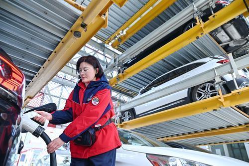 上海石油统筹布局公用桩与小区共享桩,快速拓展充电业务规模,服务场景包含小区、工业园区、办公楼宇、商场等,同时积极试点发展基于V2G的光储充放一体化项目,推动绿色能源多元应用场景落地。截至目前,公司累计发展充电站200余座,共计5400余个充电终端。图为12月17日,在上海石油第十加能站立体停车充电服务区,员工为顾客车辆充电。本报记者 胡庆明 摄 刘羽鸽 陈彩红 文