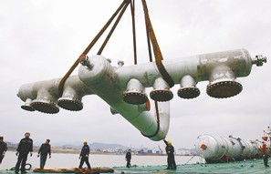 [中国石化新闻网2012-03-08]前不久,宁波工程公司旗下机械制造公司宁波机械厂成功制造大连恒力石化一期PTA工程所需7台不锈钢设备及配套管件,在镇海大件码头顺利装船交付,运往大连长兴岛项目施工现场。