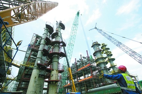 图为建设中的年40万吨酮苯脱蜡装置。姜伟摄