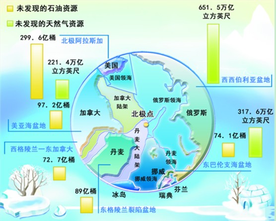 其他国家也不甘寂寞。挪威、丹麦、加拿大等国纷纷加快步伐,成为北极事务的积极参与者。在去年举行的“北极边界”会议上,挪威宣布已完成228个油气潜力区块的命名工作,其中181个区块位于北极圈内的巴伦支海海域。可以预见,极具战略意义和开发价值的北极地区将愈发热门。以极地事务为主导的“冰河世纪”或已近在眼前。