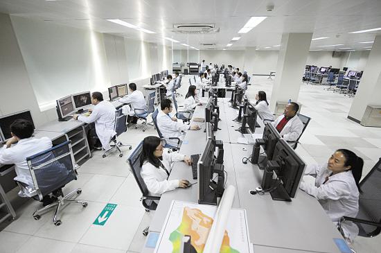 图为解释中心科研人员正在处理地震资料。