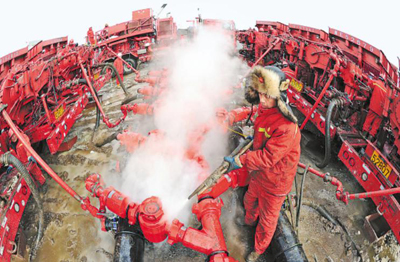 古303井是今年大庆油田勘探重点工程之一,井深2595.4米。此次施工采用直井缝网压裂,共压裂8层,加入压裂液2.7万立方米
