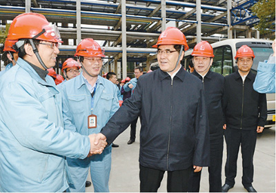 2月19日,王玉普、李春光、戴厚良来到上海石化腈纶部碳纤维装置现场,看望慰问一线员工。