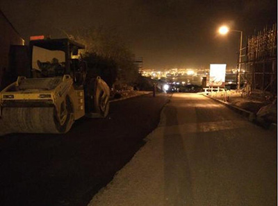 中国石油网消息6月26日,一块块围挡被搬离路面,崭新宽敞的柏油路面恢复通车,标志着历经两个多月的管道局阿曼赖苏特终端改造项目道路施工主体完工。阿曼赖苏特终端改造项目道路施工路段总长仅有465米,却连接岔路7处、现役地下设施15处、沿路新建管线及电缆套管穿越5处,施工难度大。需要翻新的道路已超长使用30年,其间虽几经维护,但实际路况仍坑坑洼洼,给过往油罐车带来很大安全隐患。各种地质条件及地下设施错综复杂且资料缺失,尤其在需要保证站内不停产的硬性要求下,施工更加困难。