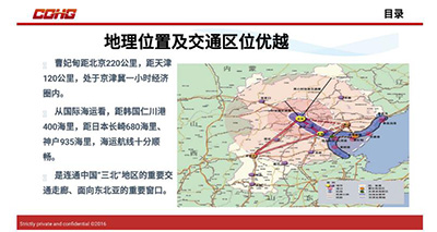 据了解曹妃甸工业区地处唐山南部沿海、渤海湾中心地带,地理位置优越,交通便捷,是优良的不冻港,是京津冀协同发展示范园区,一带一路重要出海口,东北亚区域经济合作的典范城市。工业区正在成为我国北方国际性能源、原材料主要集疏大港,世界级重化工业基地,国家商业性能源储备和调配中心,国家循环经济示范区。充足的天然气资源来自中俄东段天然气管线,中亚和西气东输管线,世界各地的海上液化天然气进口三大供给线。