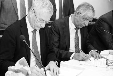 近日,在伊拉克基尔库克,伊拉克石油部长阿鲁艾比与BP中东负责人迈克尔·汤萨德(左)在伊拉克北方石油公司签署合作协议,提高基尔库克北部油田的产量。据悉,该油田由伊拉克北方石油公司经营,协议规定BP把该油田的日产量提高到75万桶,是现有产量的两倍多。伊拉克计划1月底开始用油罐车向伊朗运送原油。