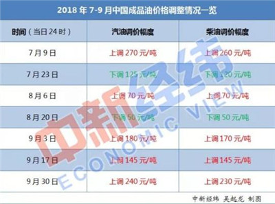 中新经纬据国家发改委已发布的成品油调价信息计算得知,截至今年9月30日24时,我国汽柴油价格较年初分别上涨1260元/吨和1230元/吨。具体来看,以北京为例,2018年1月1日,92#汽油价格每升6.84元,到10月1日,92#汽油价格已涨至每升7.85元。