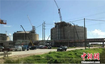 图为美国自由港LNG项目即将完工的液化天然气储罐。