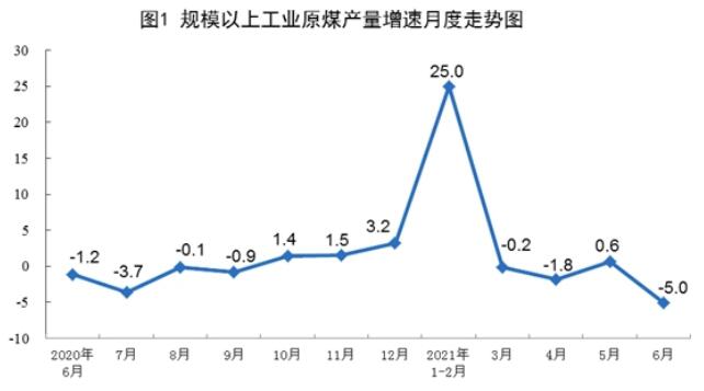 国家统计局透露,以2019年6月份为基期,原煤生产两年平均增速下降,天然气生产增长较快,原油、电力生产增长平稳。2021年6月,规模以上工业原煤生产同比下降,天然气生产增速加快,原油、电力生产增速略有回落。