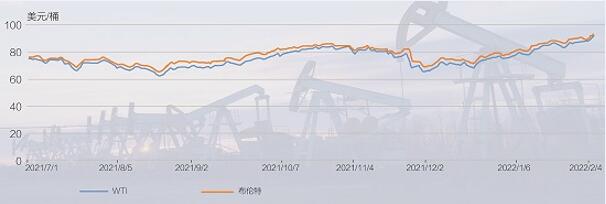 ·俄罗斯乌克兰紧张局势持续,OPEC+维持小幅增产步伐不变,美国严寒天气导致供应端预期收紧,国际油价2月4日显著上涨。WTI收于每桶92.31美元,涨幅为2.26%;布伦特收于每桶93.27美元,涨幅为2.37%。