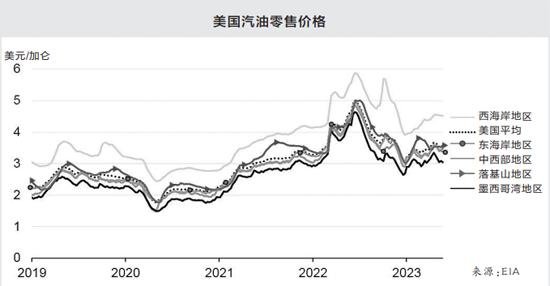 美国汽油价格因地区而异,受各州的供需条件、燃料规格和税的影响。汽油零售价格通常西海岸地区是最高的,因为该地区与其他主要炼油中心的联系有限,供需紧张。同时,西海岸各州的税收也高于全国平均水平。汽油价格最低的是墨西哥湾地区,美国一半的炼油能力都集中在这里,汽油的产量超过消费量。墨西哥湾沿岸各州的汽油税一般也低于全国平均水平。