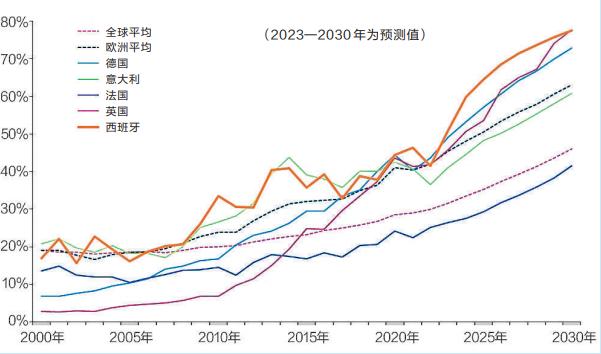 尽管德国在太阳能和陆上风电领域保持着主导地位,但预计未来几年西班牙在太阳能和风能领域将迅速发展。今年西班牙还将向法国出口电力,这体现了西班牙在欧洲能源格局中日益突出的重要地位。(栏目主持:刘亮)来源:睿咨得能源