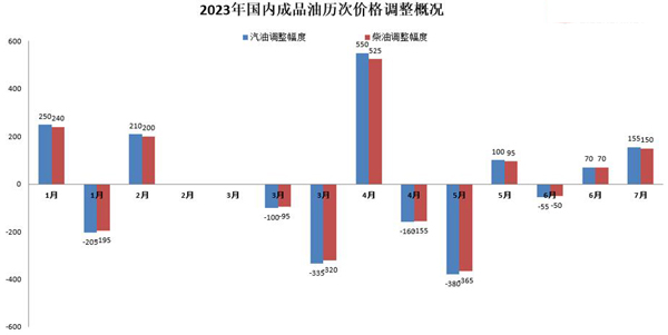 [中国石油新闻中心2023-07-14]人民网北京7月13日电(记者杜燕飞)国家发改委12日发布通知表示,根据近期国际市场油价变化情况,按照现行成品油价格形成机制,自7月12日24时起,国内汽、柴油价格每吨分别提高155元、150元。折合升价,全国平均来看,92号汽油上调0.12元,95号汽油和0号柴油均上调0.13元。