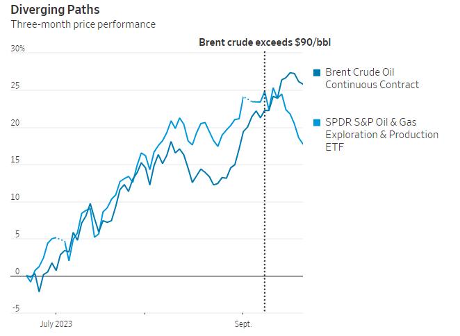 尽管过去一年石油和天然气生产商的股价大多与石油价格同步波动,但这种关系显然已经破裂。自9月8日以来,自9月8日布伦特原油收于每桶90美元以上以来,油价又上涨了2.6%,而石油生产商指数则下跌了5.3%。该指数的回落可能是自2021年以来快速增长后的一次自然调整,但对于能源投资者来说,不投入过多的资金可能更为明智,因为市场条件可能已经发生变化。