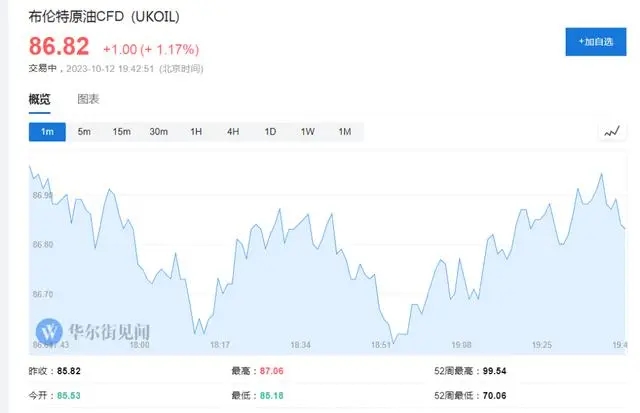 巴以冲突升级之际,能源市场是全球关注的重点之一,因担心以色列与哈马斯间的冲突升温扰乱全球石油供应,布油价格在本周初一度上逼90美元,但冲突对油价的刺激并未持续,截止发稿,布伦特原油上涨1.17%至86.82。
