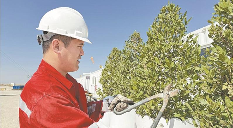 长城钻探科威特项目的施工区域绝大部分为沙漠地带,黄沙漫天、气候炎热,最高气温可达51摄氏度,年降水量少,无山川、河流,地下淡水贫乏;受限于恶劣的沙漠气候,植被以短期生草本植物为主。为营造绿色低碳可持续发展的新环境,该项目GW138队积极开展井场与营地的植树造林活动,在生活与生产区域内建立起了适合多物种生存繁衍的生态环境。随着树木一天天长大,这里形成了沙漠中独有的一片绿洲,吸引了当地各种动物前来安家,绘就了一幅人与自然和谐共生的美好画面。