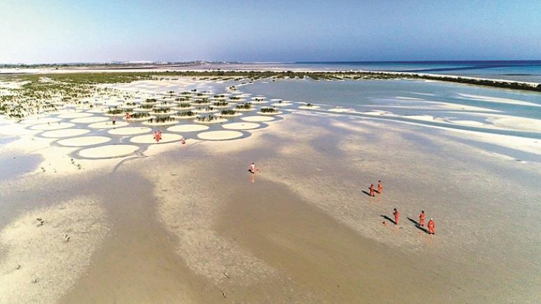 在阿布扎比沿海潮间带生长的耐盐树森林“红树林”,是当地政府部门重点保护的生态区域。针对红树林区域作业,项目组制定了严格的保护制度和施工程序,由项目环境监督和QC组设计人员实地踏勘,最终确定炮点点位和检波点铺设位置。环境监督现场跟班监控,确保对环境的影响降至最低。2023年6至8月,项目组还与阿联酋国家石油公司共同发起了“蔚蓝海岸、绿色勘探”主题宣传活动,联合石油公司开展绿色勘探主题宣传,在游人交织的海岸设立宣传大篷车,深入社区发放宣传单,将绿色发展理念融入项目生产全过程。