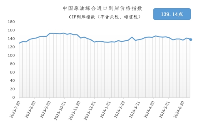7月8日-14日中国原油综合进口到岸价格指数为139.14点(图)
