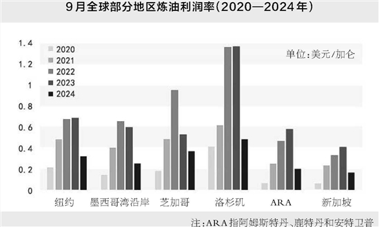 9月全球炼油利润率跌至多年来的季节性低点(图)