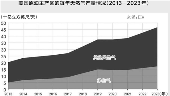 2023年,伴生天然气占美国天然气产量的36.7%,而2022年这一比例为37.4%。统计数据显示,伴生气产量的增长速度与非伴生天然气产量的增长速度相当。